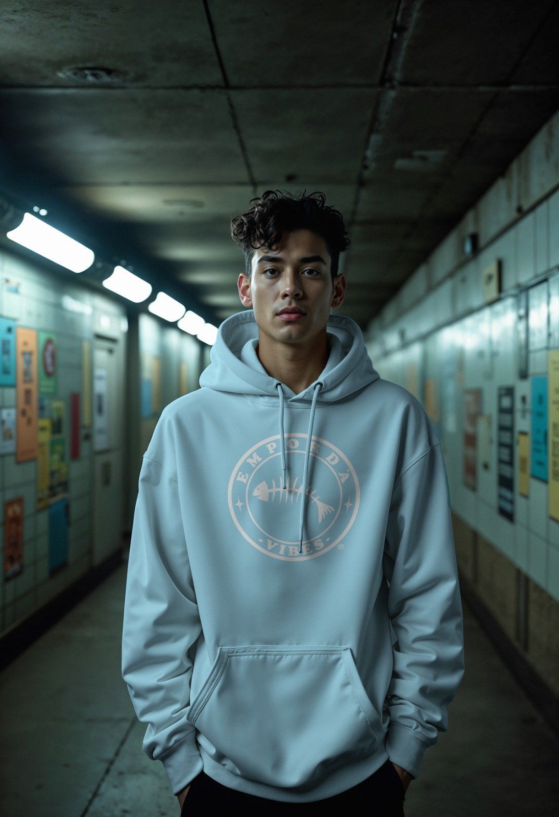 Cordó d’ajust a to amb el cos. Mateix teixit de la peça a punys i baix. Butxaca cangur.